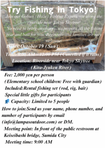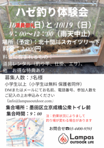 10月12日(日)満員御礼 追加10月19日ハゼ釣り体験行います